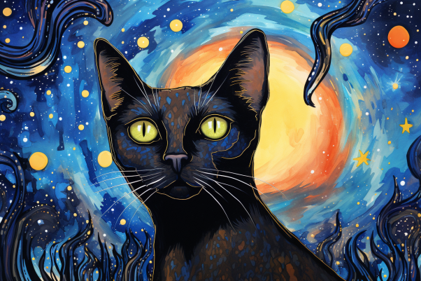 Black Siamese Cat On A Starry Night Diamond Painting Kits