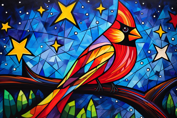 Cardinal Starry Night On Stained Glass