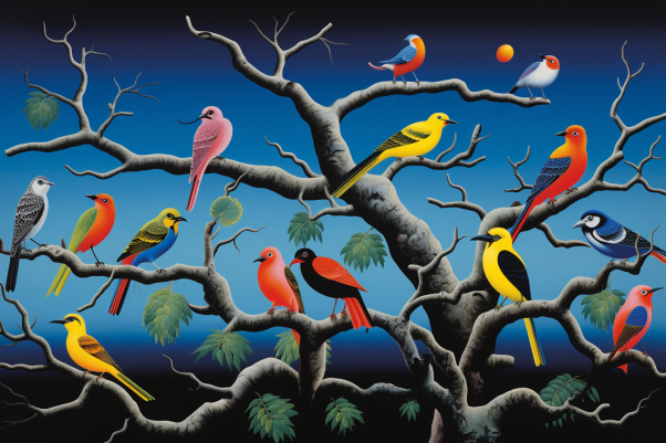 Colorful Birds On Branches