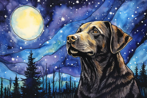 Dark Labrador On A Starry Night