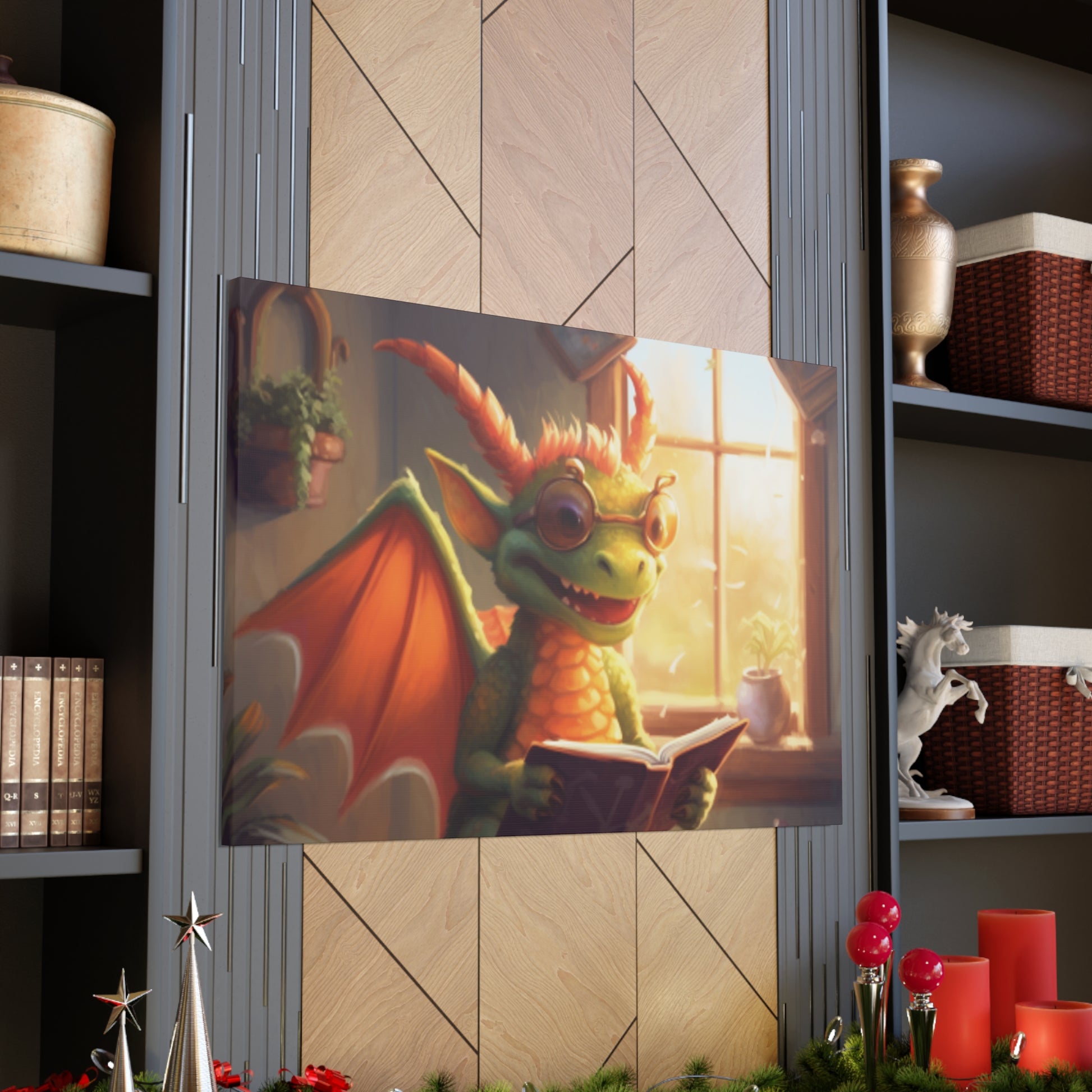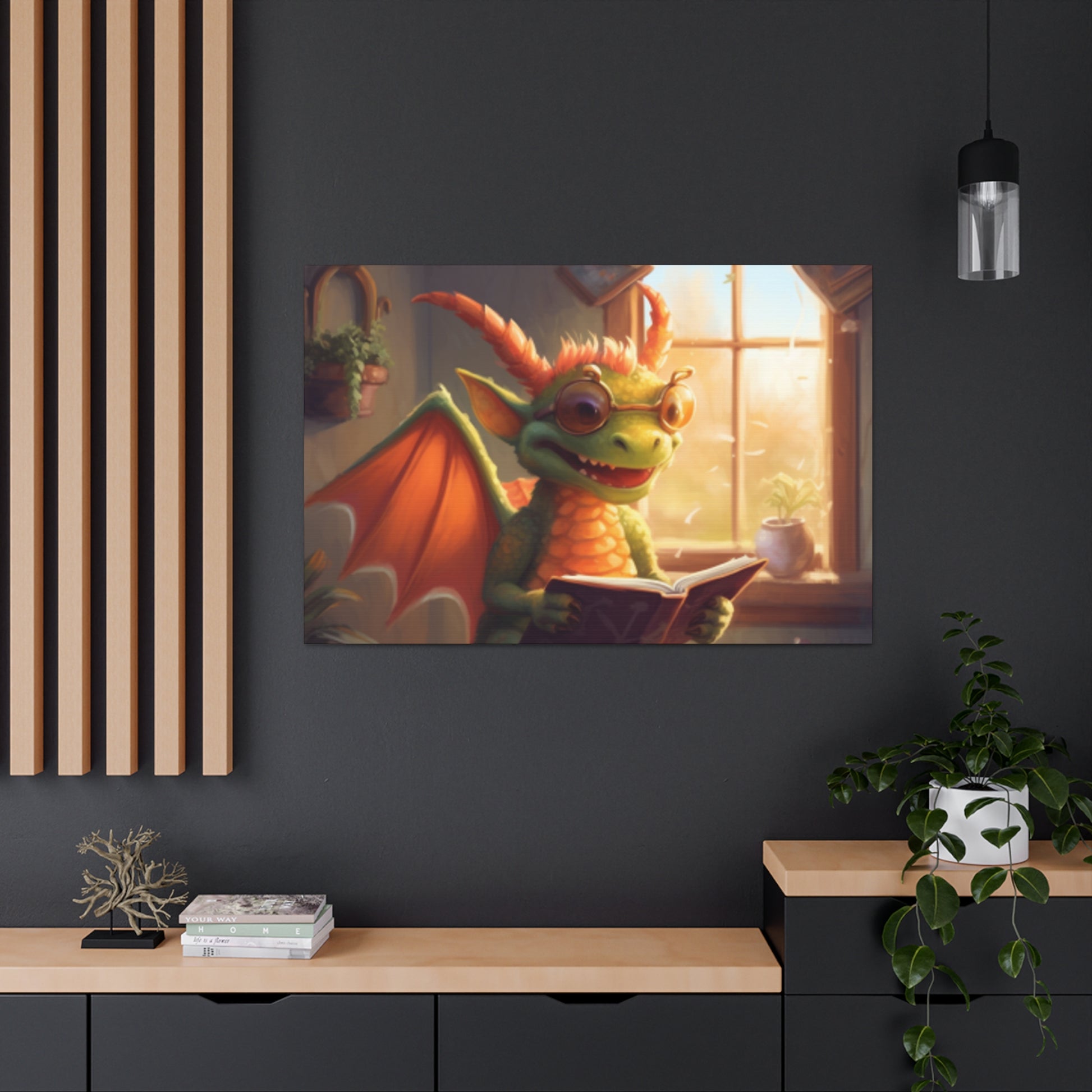 Experience majestic dragon energy with the Dragon Reading in The Sunlight large wall art!