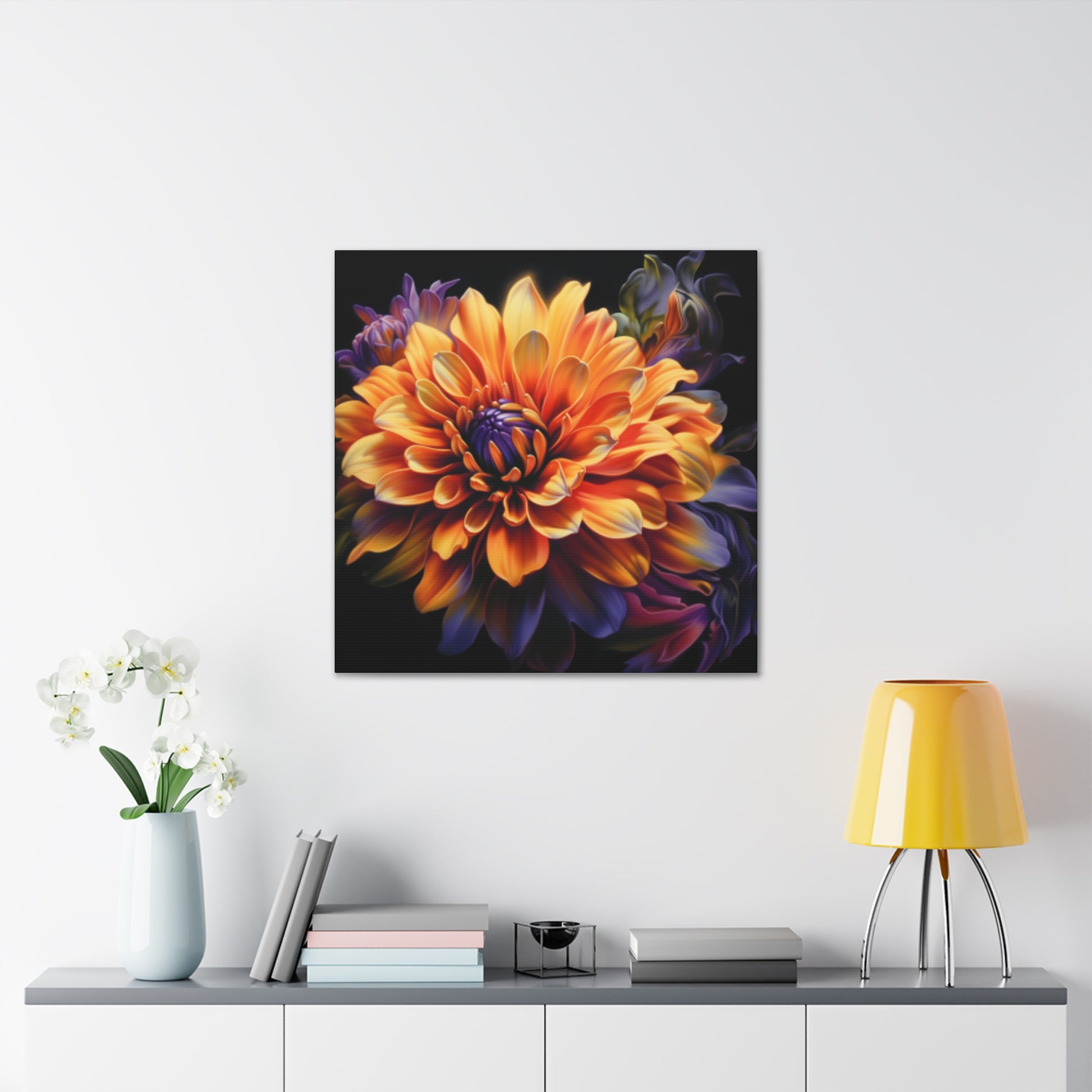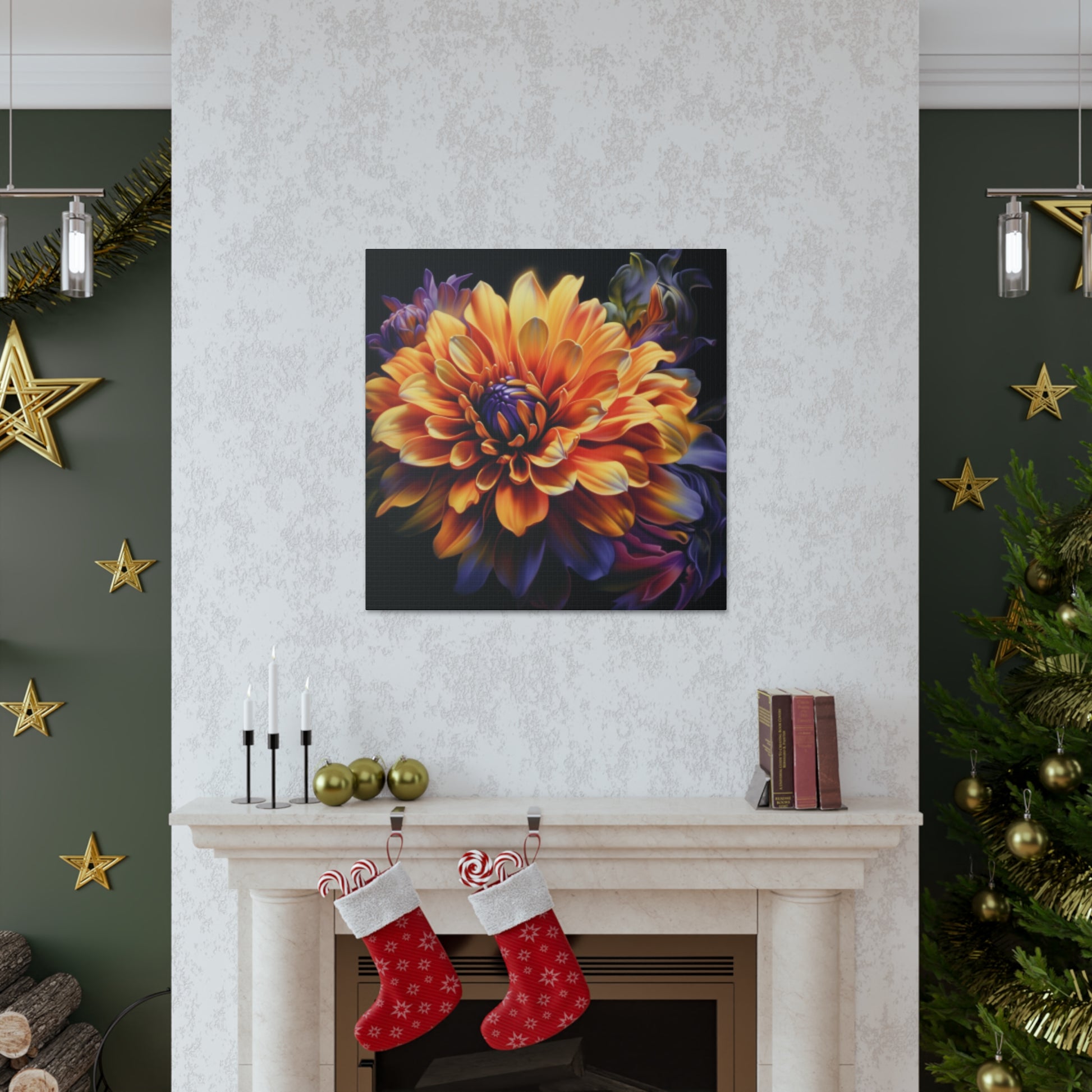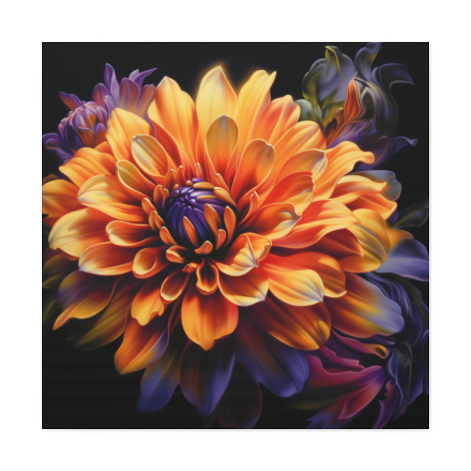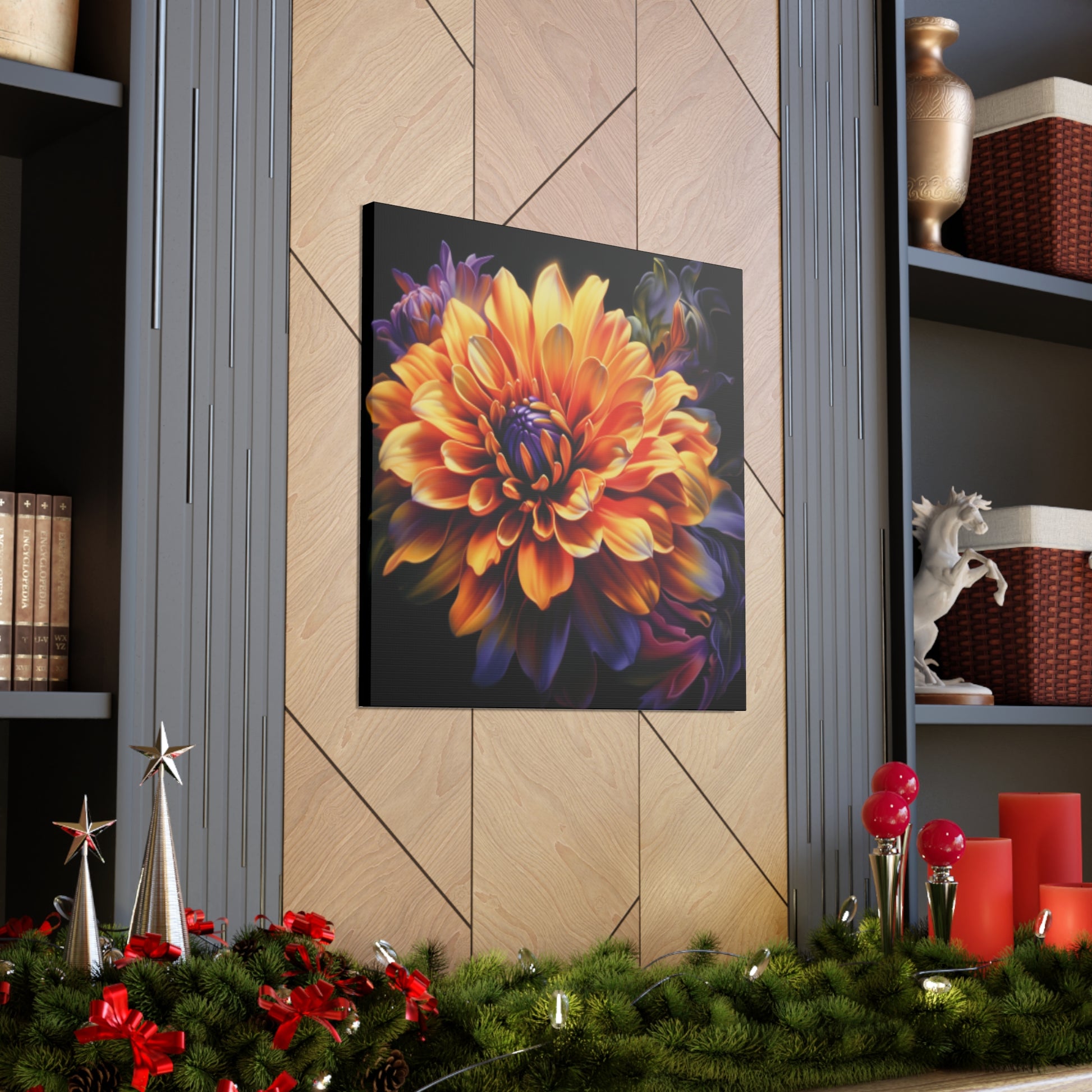 Incorporating beautiful canvas wall art in your home or office has mental health benefits. It can serve to inject a sense of wonder and take your mind off everyday troubles as you admire the beauty of this Glowing Dahlia In Bloom.
