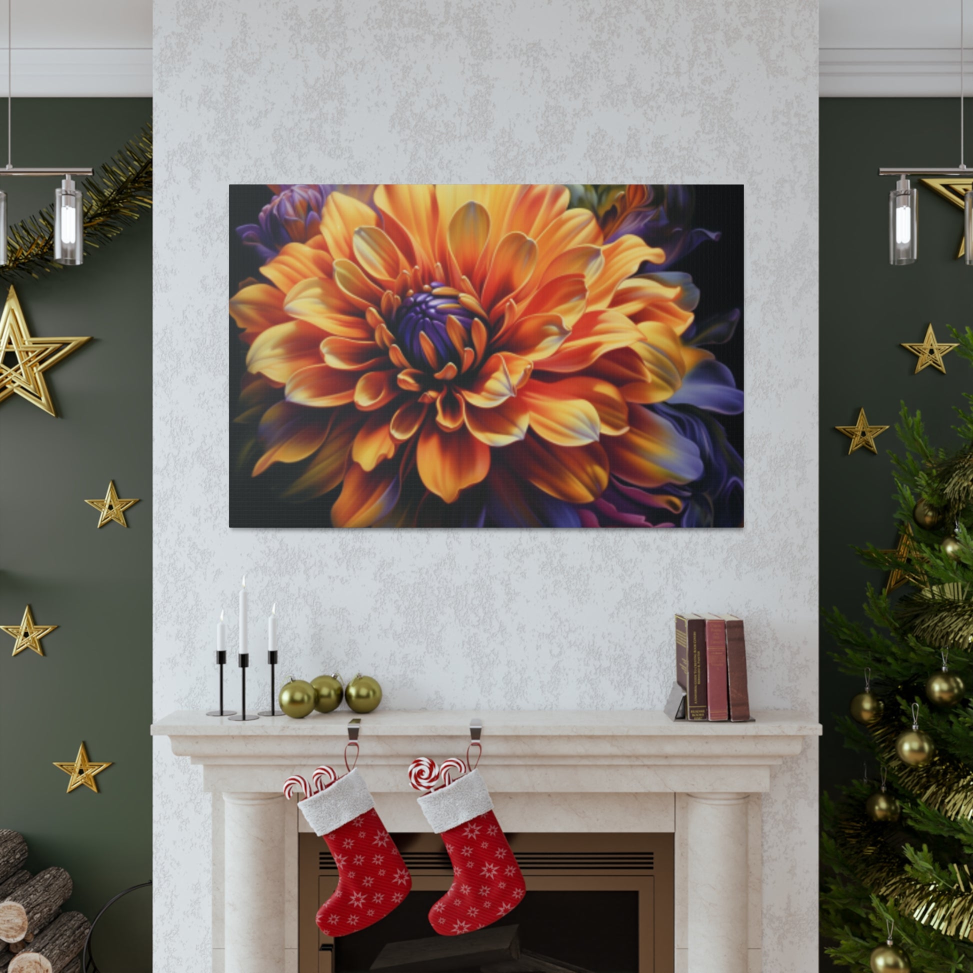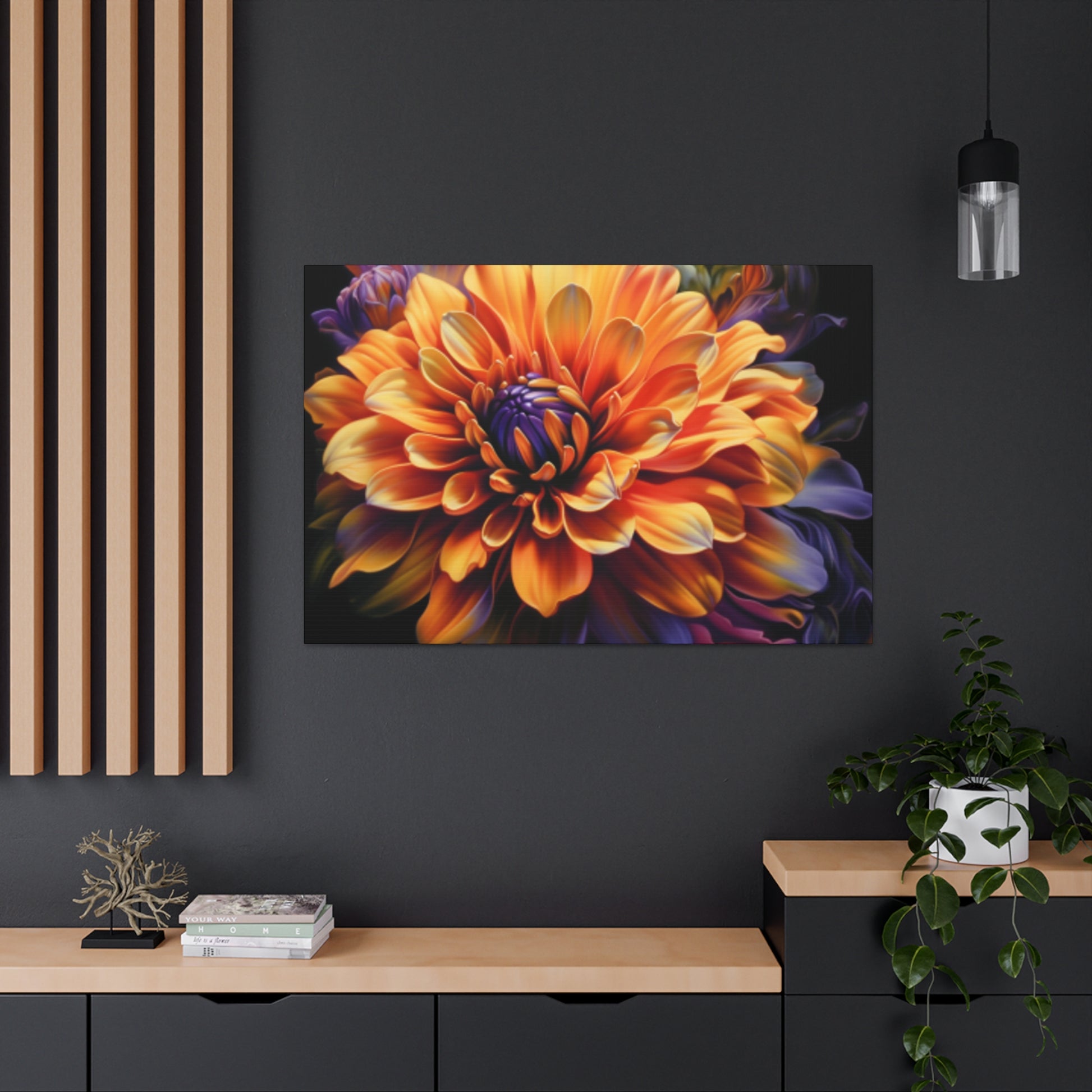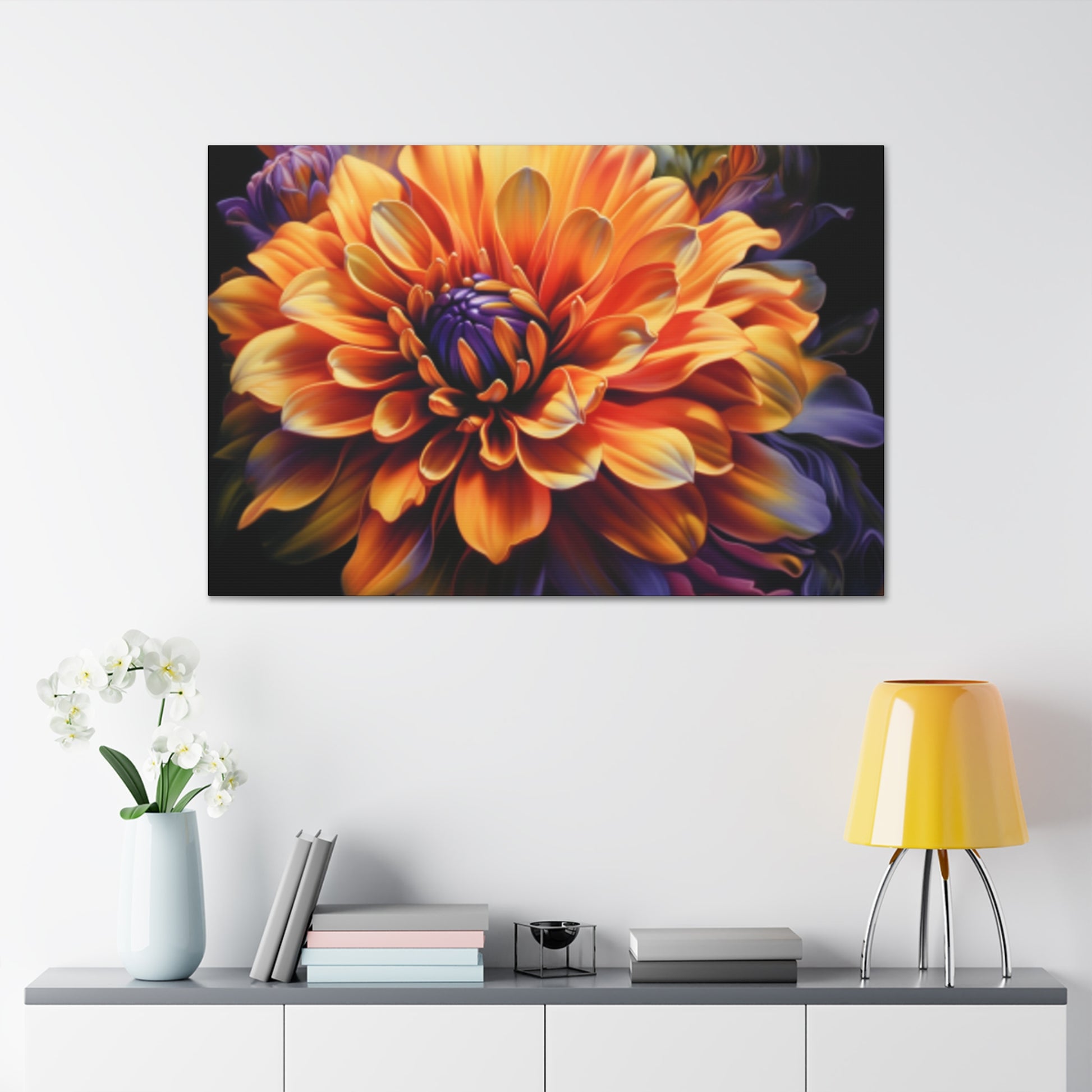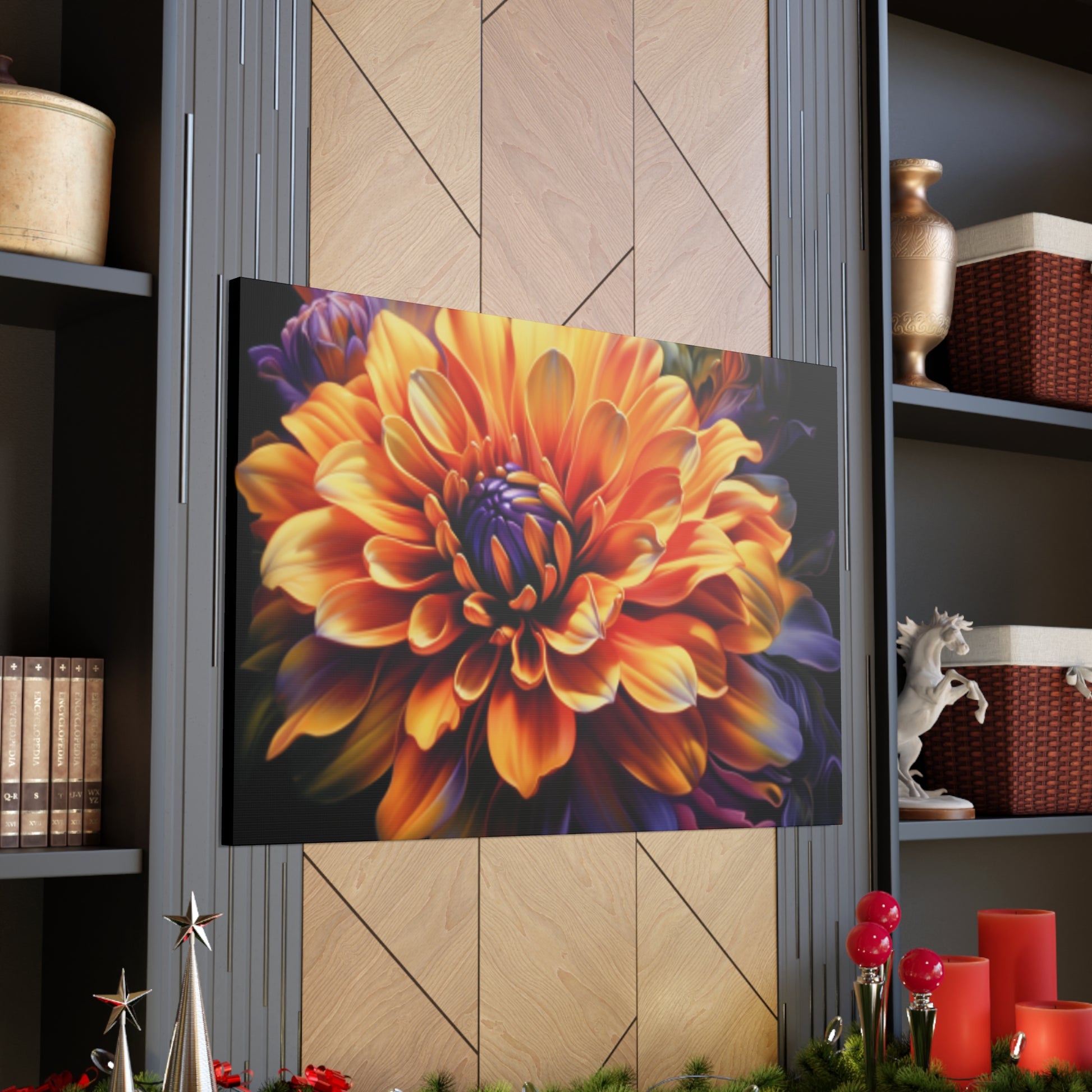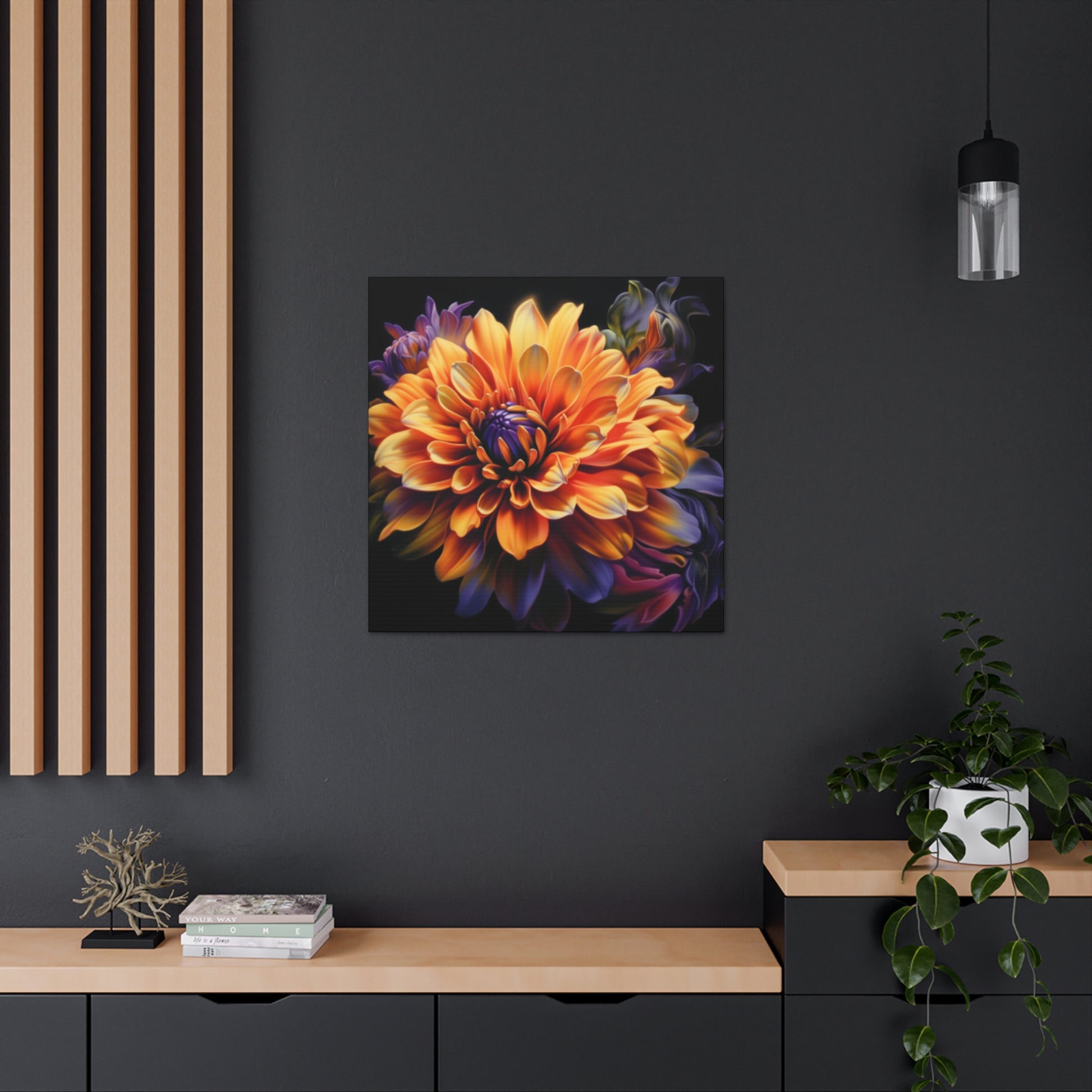 Incorporating beautiful canvas wall art in your home or office has mental health benefits. It can serve to inject a sense of wonder and take your mind off everyday troubles as you admire the beauty of this Glowing Dahlia In Bloom.