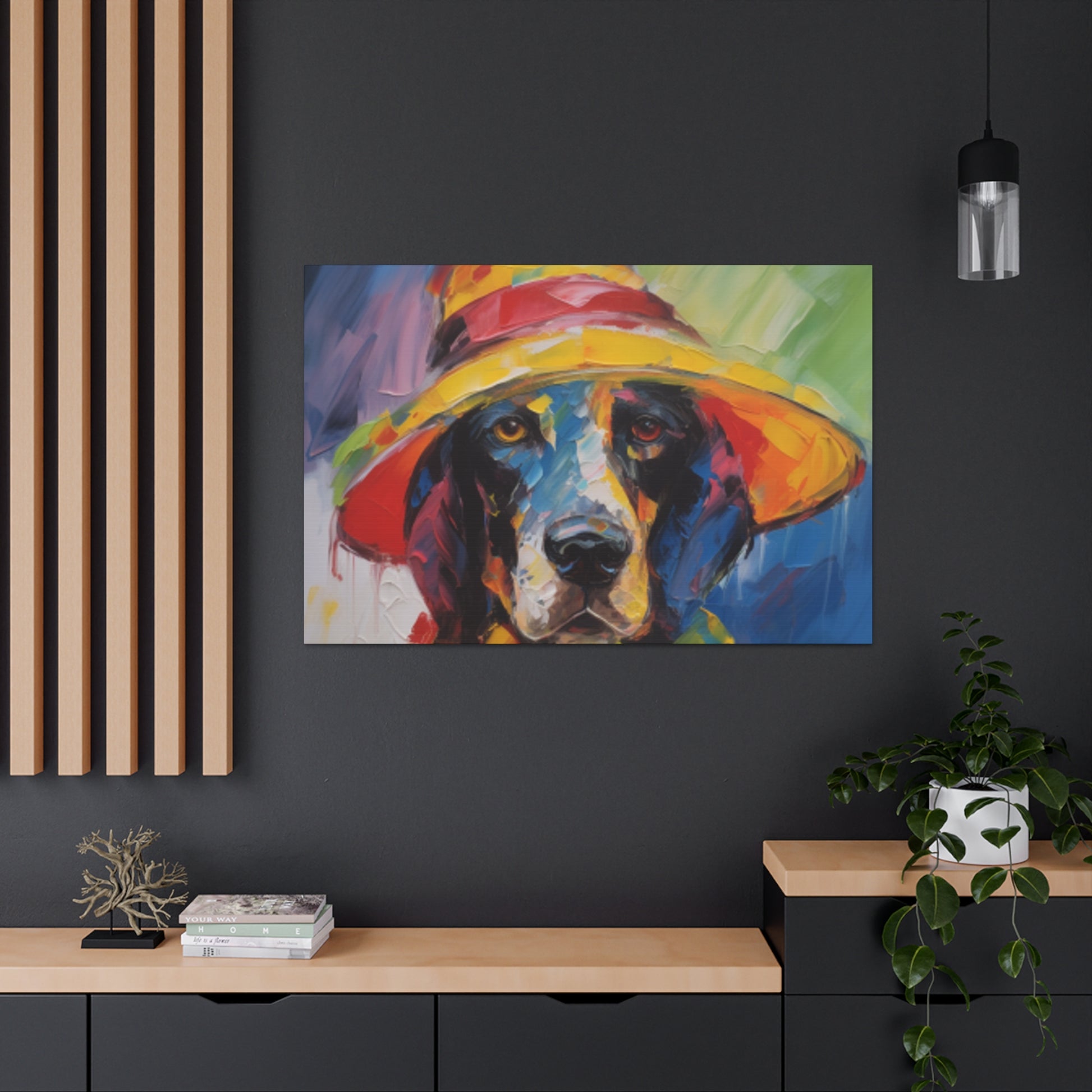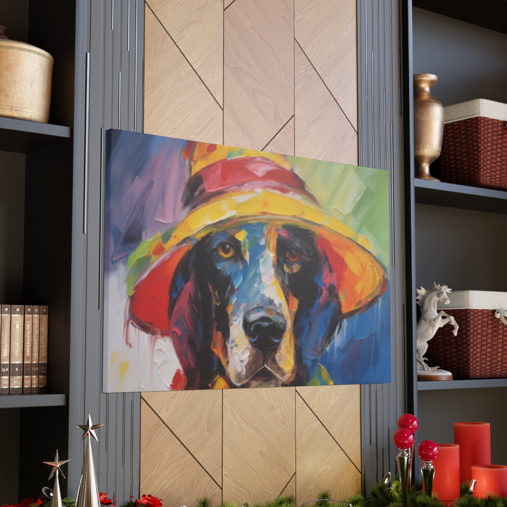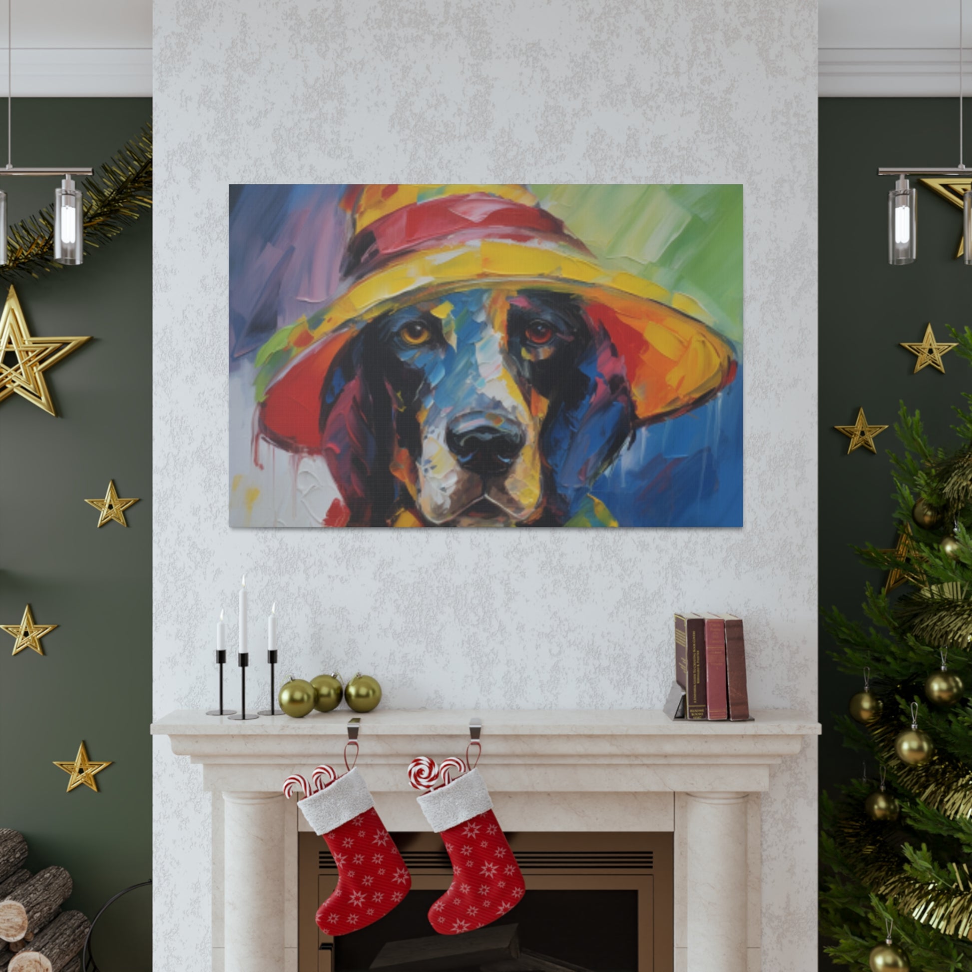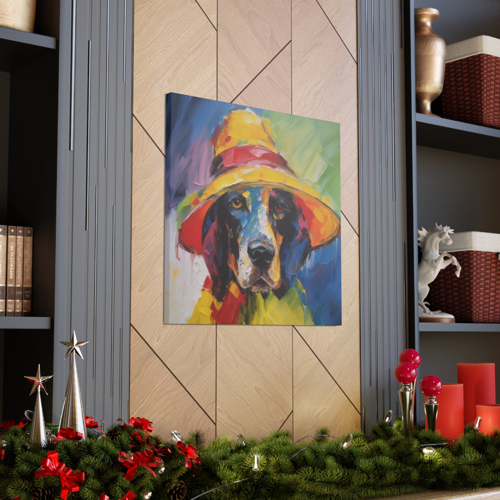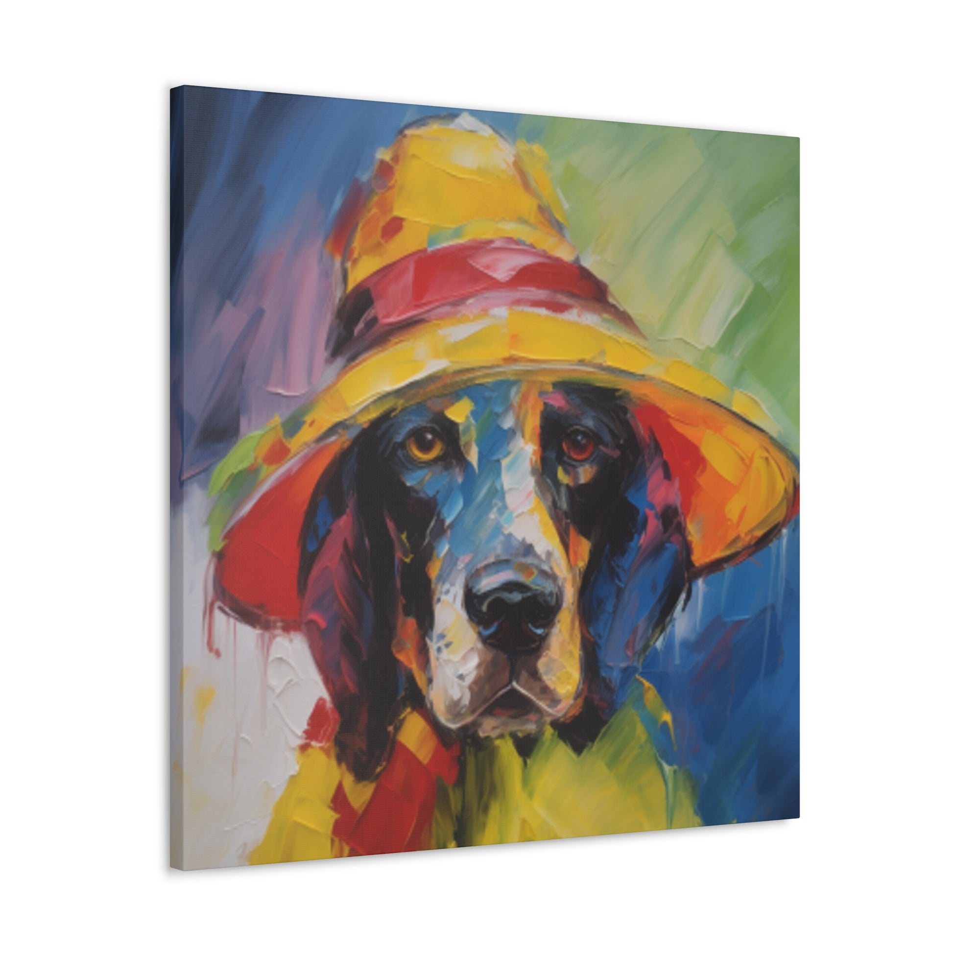 Buy the perfect piece of art for your home with Good Boy, Coonhound Ready For The Rain large wall art. Start your journey with BestCanvasArt.com and buy your very own high quality and visually stunning piece of wall art. This canvas features an adorable hound dressed up for the rain, ready to take on the darkness and the light. Start your rain journey today with this beautiful art piece!