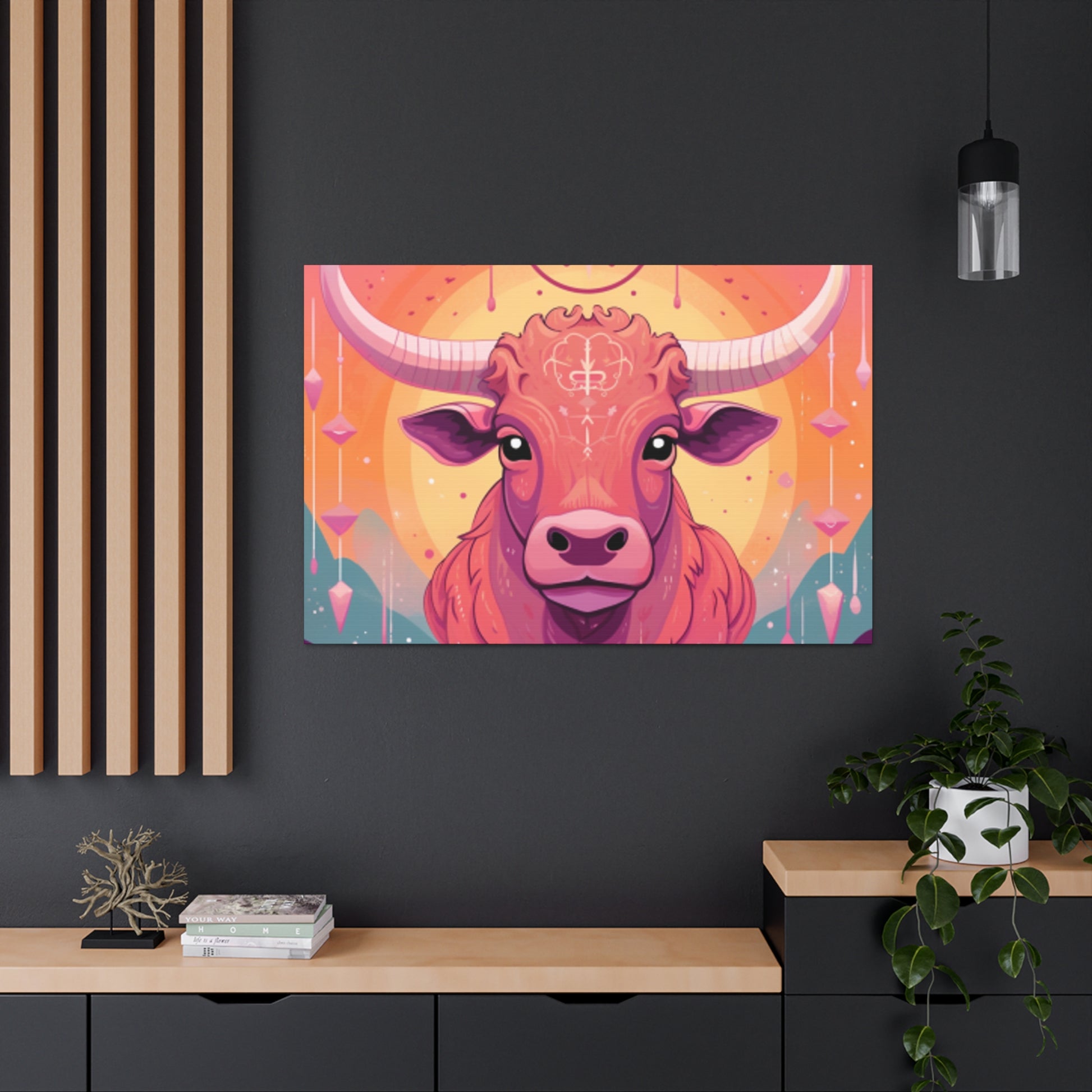 Introducing the Happy Taurus Lofi Style large wall art from BestCanvasArt.com! Textured, expressive and bursting with colors, this piece of canvas wall art will look stunning on your walls! Buy it in its full glory in large sizes and enjoy a more detailed finished that you can be proud to show off. Plus, owning a piece of canvas wall art like this can provide amazing mental health benefits, providing a beautiful scene for you to reflect on during stressful moments.
