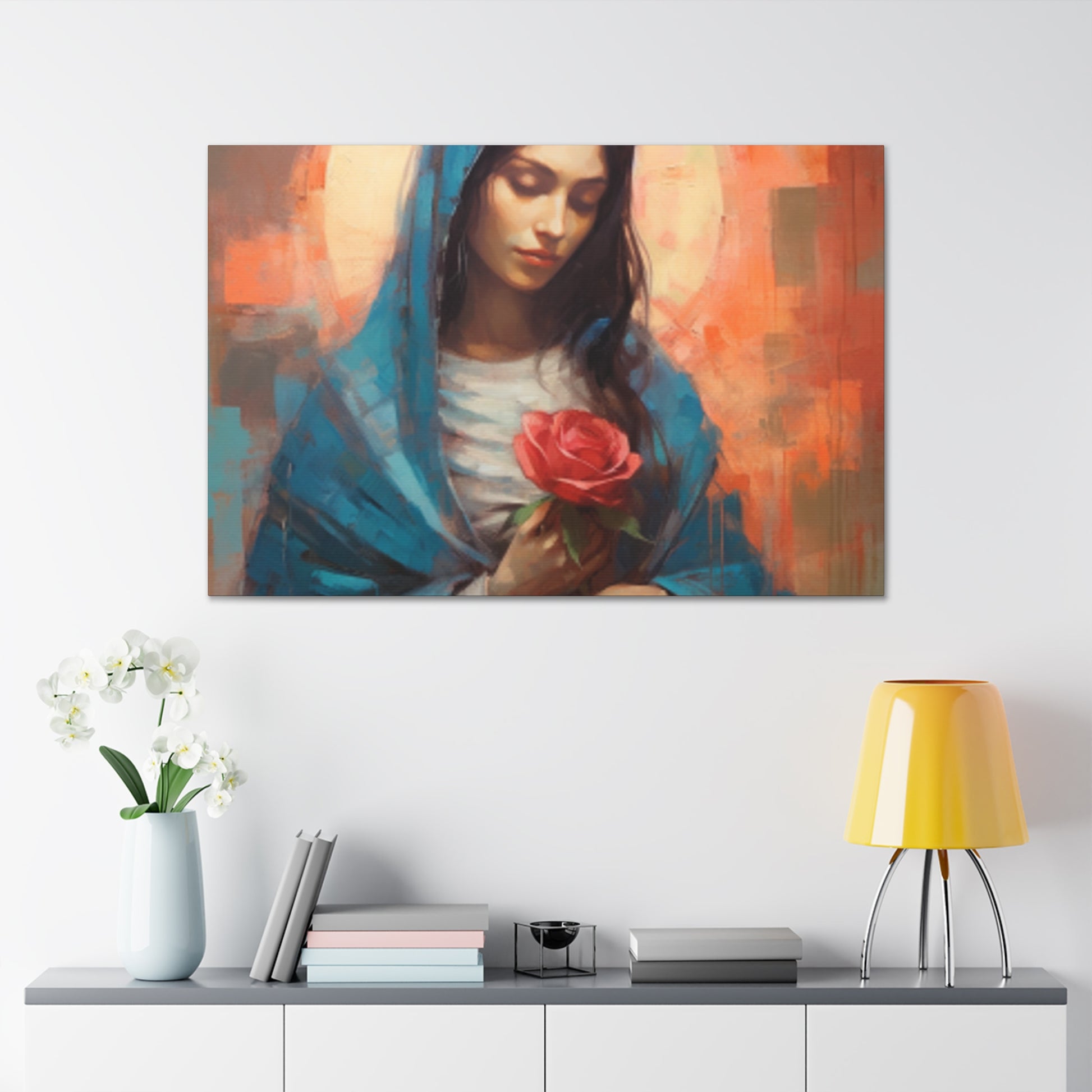 This handsome high quality canvas of Kind Mother Mary with Golden Glow will make a great addition to your home! The brilliant golds and vivid hues of this canvas will make every room stand out from the rest. With every visually stunning piece purchased from BestCanvasArt.com, you can feel proud knowing you’re getting the best American-made craftsmanship money can buy! Enhance your living space with this inspirational piece and feel the warmth of a beautiful motherly figure. Purchasing the larger sizes will bring even more detail to your finished product, creating a breathtaking piece of art for everyone to enjoy. Plus, many studies have shown that wall art can boost mental health, making it the perfect addition to your home. “The painting has a new meaning for me now”, said Sarah D. “I bought 'Kind Mother Mary With Golden Glow' from BestCanvasArt.com and it has made the most magnificent focal point in my living room”. No matter the occasion, every art-lover will appreciate this amazing piece. Buy now and turn your walls into a shining beacon of indulgence – or grab a few for family and friends as the perfect housewarming gift! As Pablo Picasso once said, “Painting is just another way of keeping a diary.” So go ahead and immortalize your life in color and light with 'Kind Mother Mary with Golden Glow'!