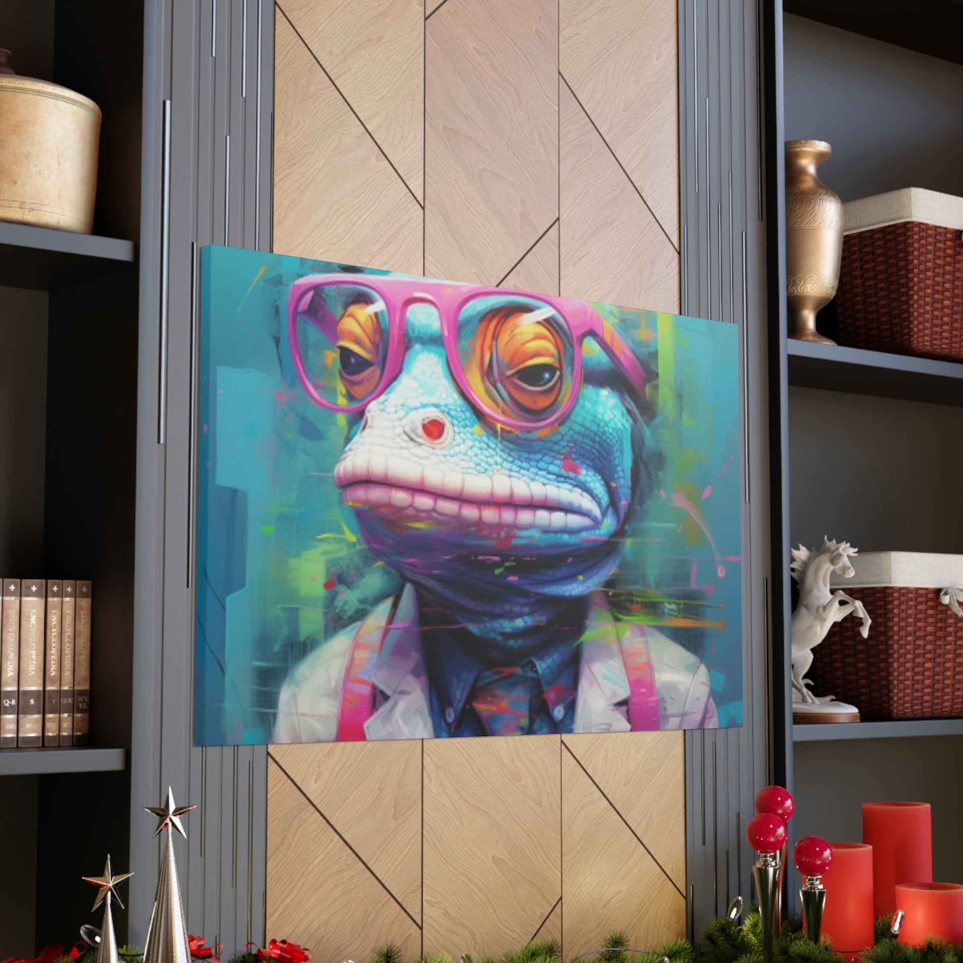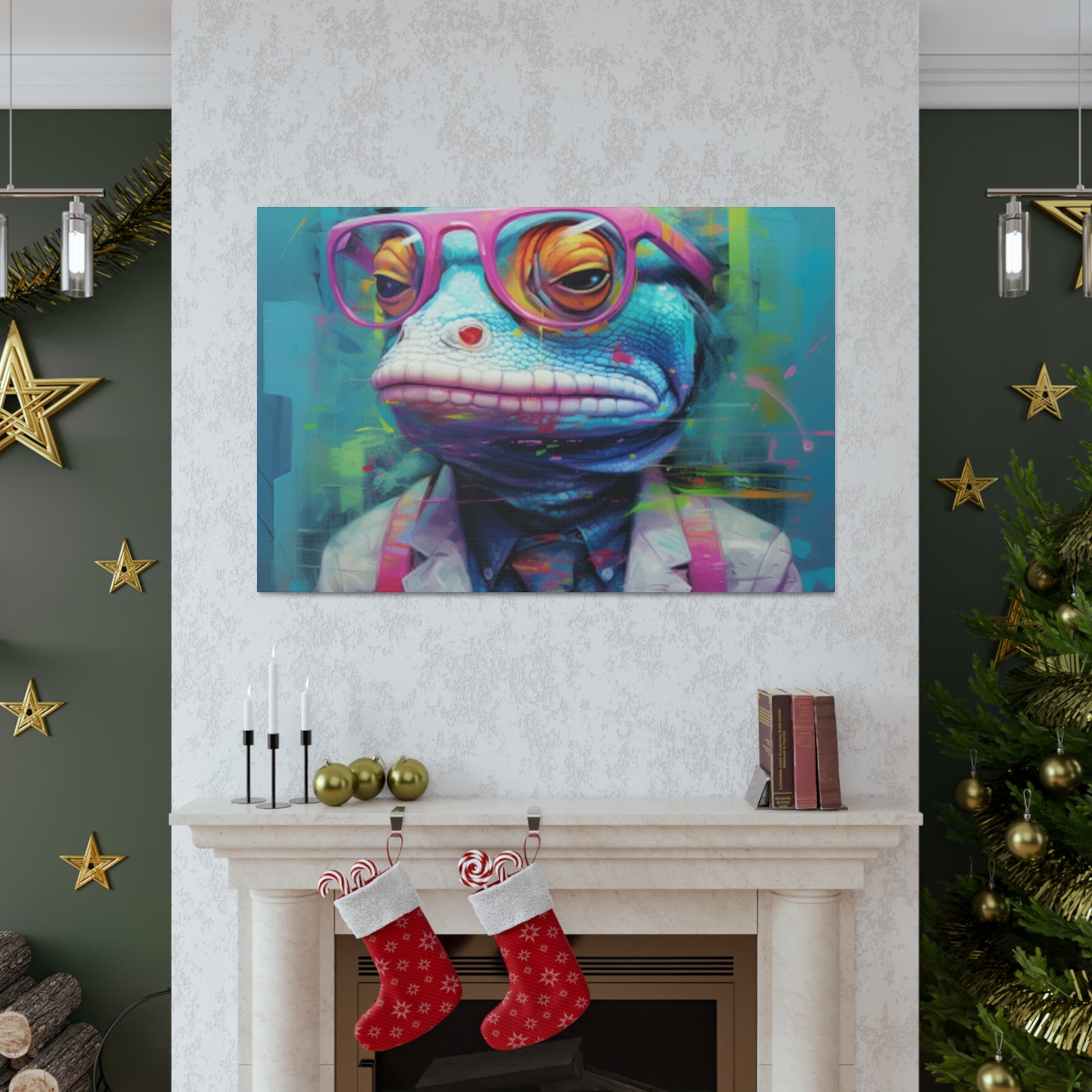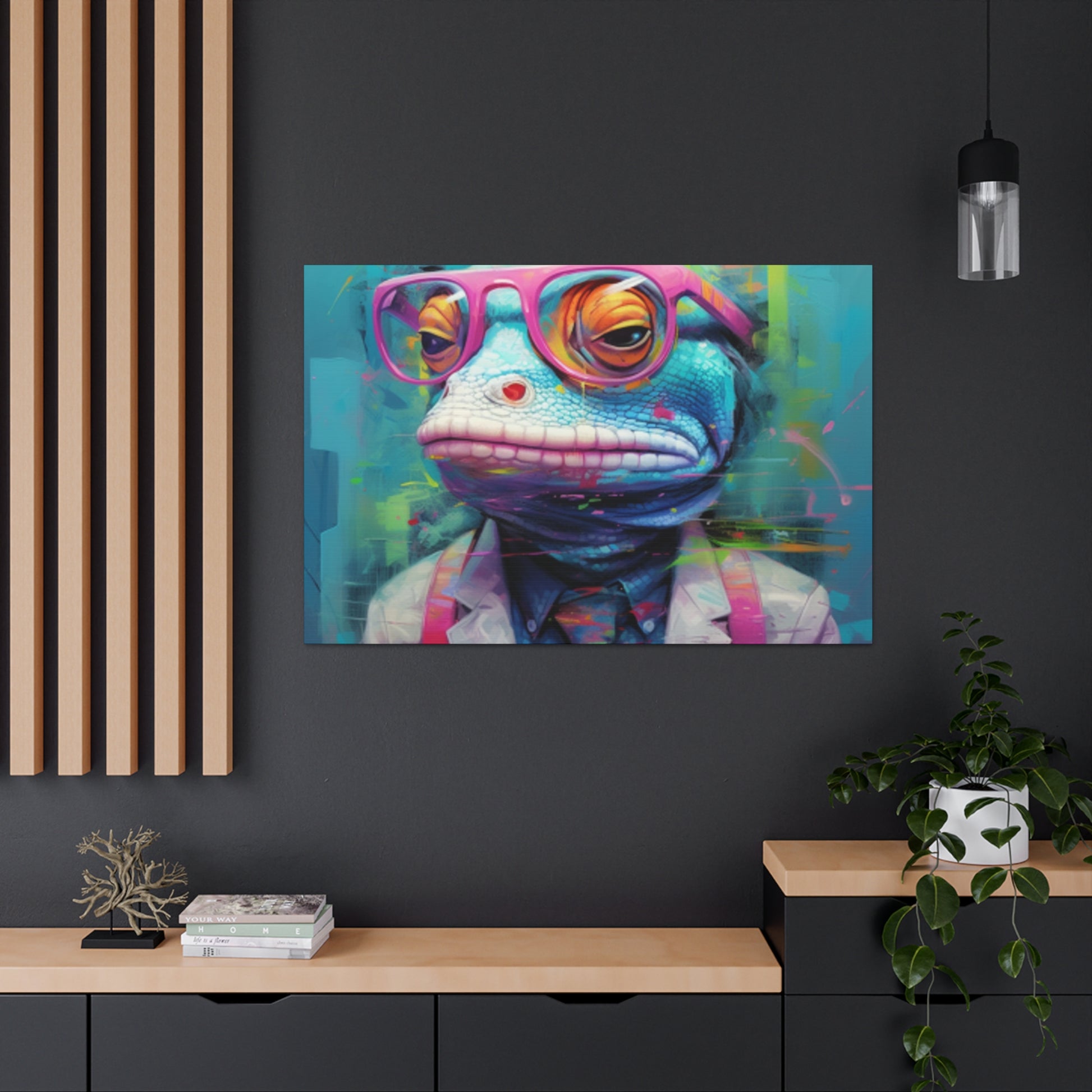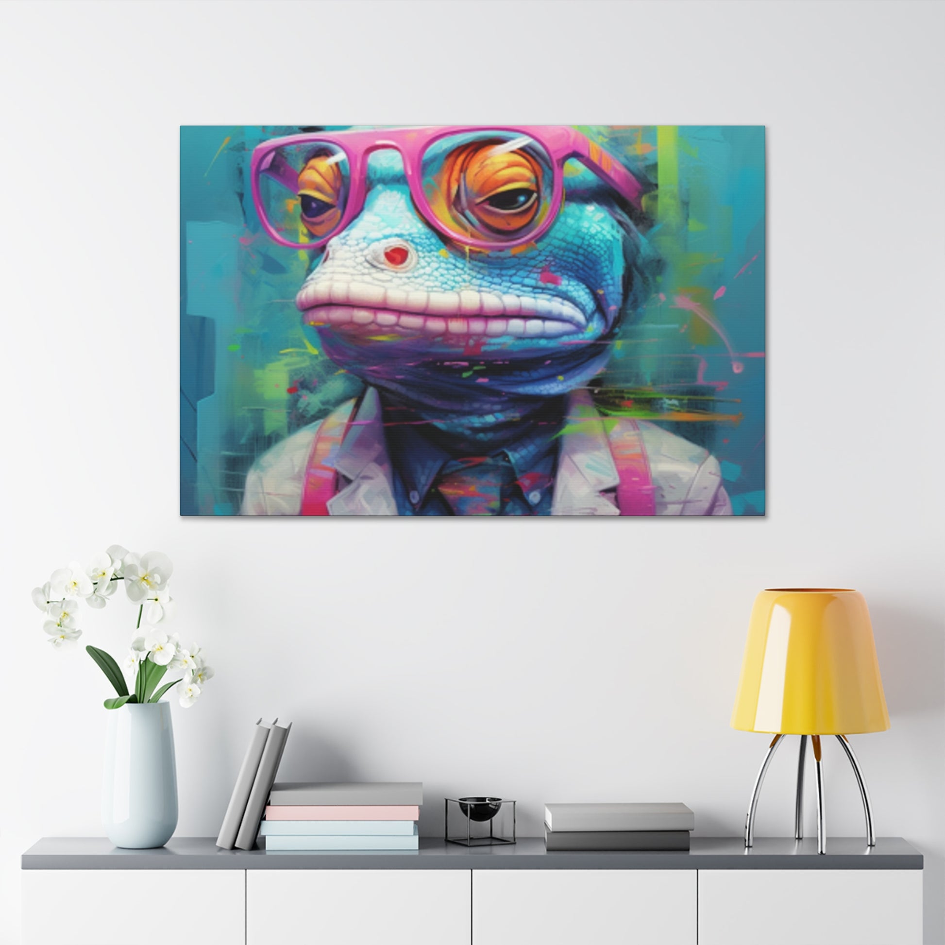 Moody Lizard Dude With Blue Background large wall art is stunning, trendy, and unique. An eye-catching piece of artwork that is sure to catch attention, this wall art will be a perfect addition to any home or office. Create a statement with its bold design and artwork on display. BestCanvasArt.com offers contemporary high quality artwork made just for you, and each piece is made in USA. Buying larger sizes of artwork will result in a more detailed and aesthetically pleasing result, so why not get the largest size for maximum effect? Studies have linked wall art with improved mental health, so own this piece of visual splendor for well-being as well as to impress visitors with your trendy style. These wall arts also make an impressive gift for your loved ones. Imagine your best friend exclaiming in delight at the sight of this beautiful artwork. Get the conversation started in any room and pair it with plants or custom art frames. "My purchase from BestCanvasArt.com was quick and convenient! I'm so happy with the quality and aesthetic of the art, I'm thinking of buying more in different sizes. Definitely recommend!" -John Doe, Satisfied Customer Buy Moody Lizard Dude With Blue Background large wall art to make a statement that combines your love for unique artwork and your sense of style. "After all, you don't have to be Rembrandt to enjoy painting" -Bob Ross