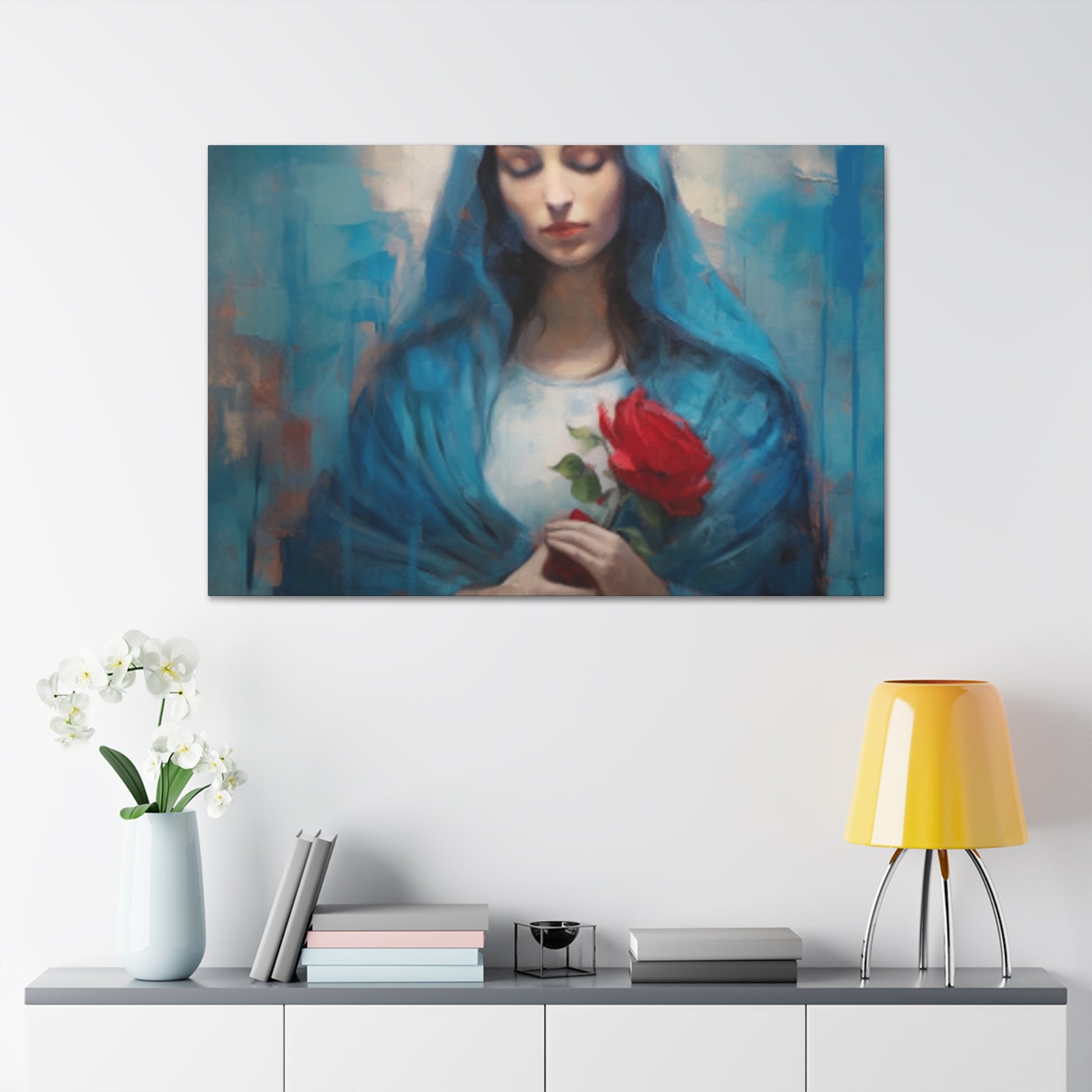 "As an avid art collector, I was very pleased with my purchase at BestCanvasArt.com. The high quality of the Mother Mary Praying For Sinners large wall art made it visually stunning and it has been an excellent addition to my collection.” –Jane Smith, Art Aficionado.