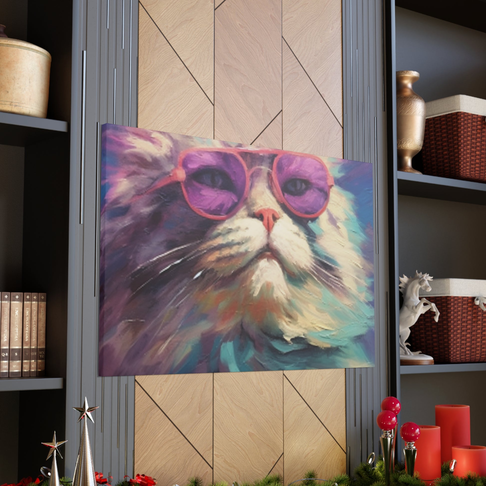Introducing the Pastel Furball Cat In Purple Glasses large wall art! This canvas wall print is breathtakingly beautiful and designed to amaze and make a statement in your home or office. Show your uniqueness and taste in art with this wonderful print. Buy it for yourself of gift it to the cat-lover in your life as a stylish surprise. The creative details and stunning colors will change the vibe of any room and create an impactful atmosphere.
