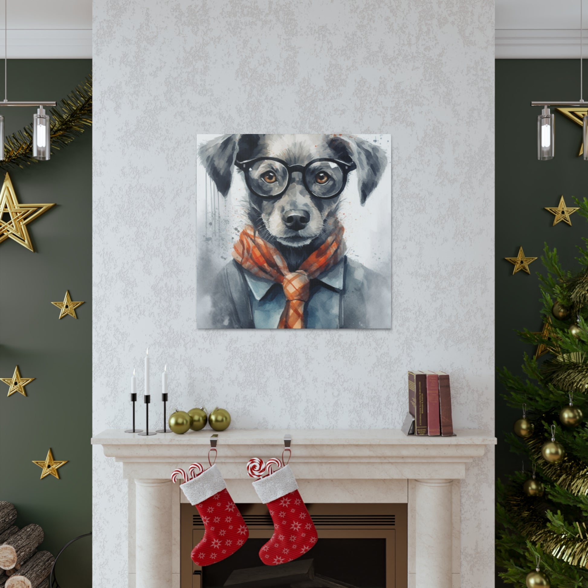 Puppy In Black Glasses, Pops Of Orange- Large Wall Art