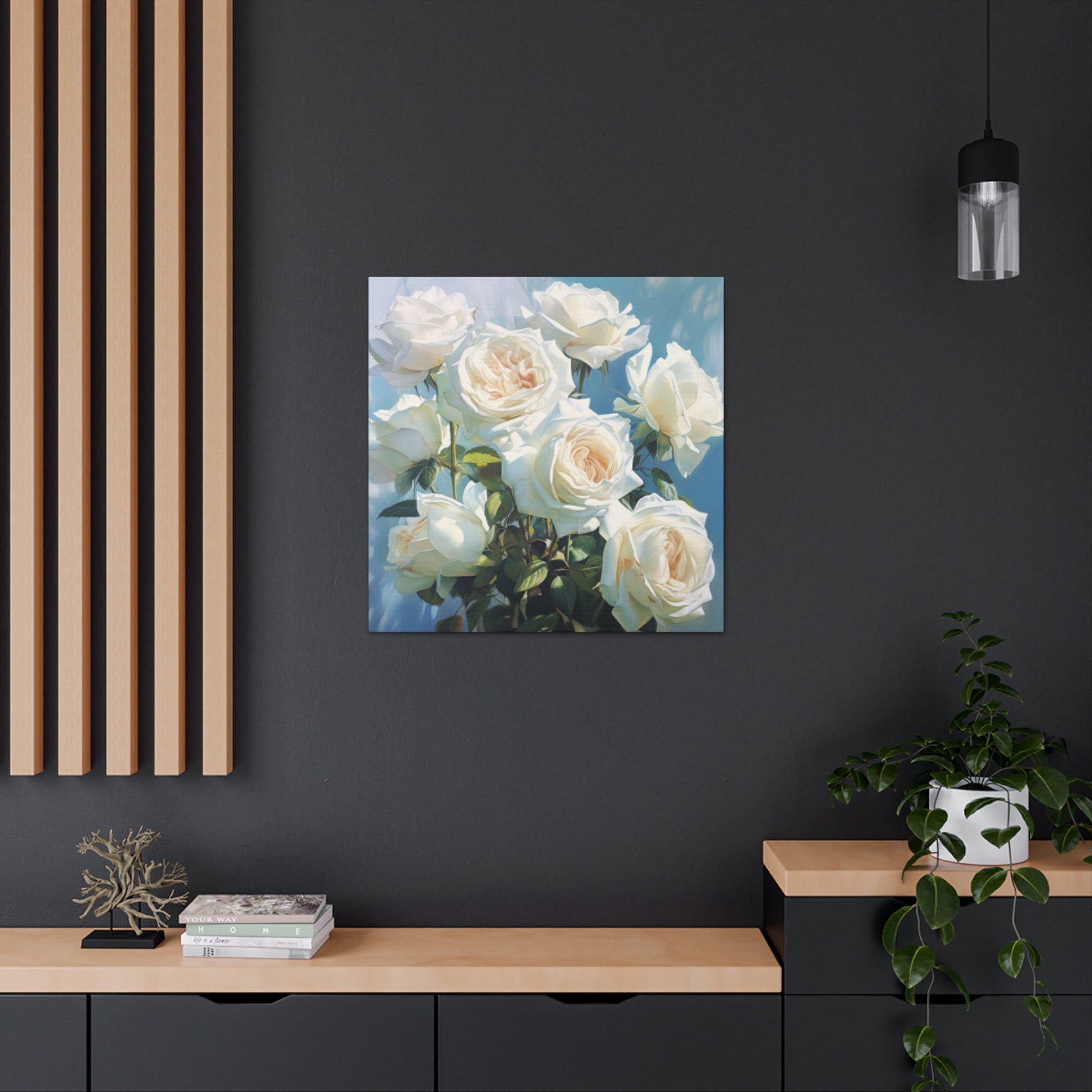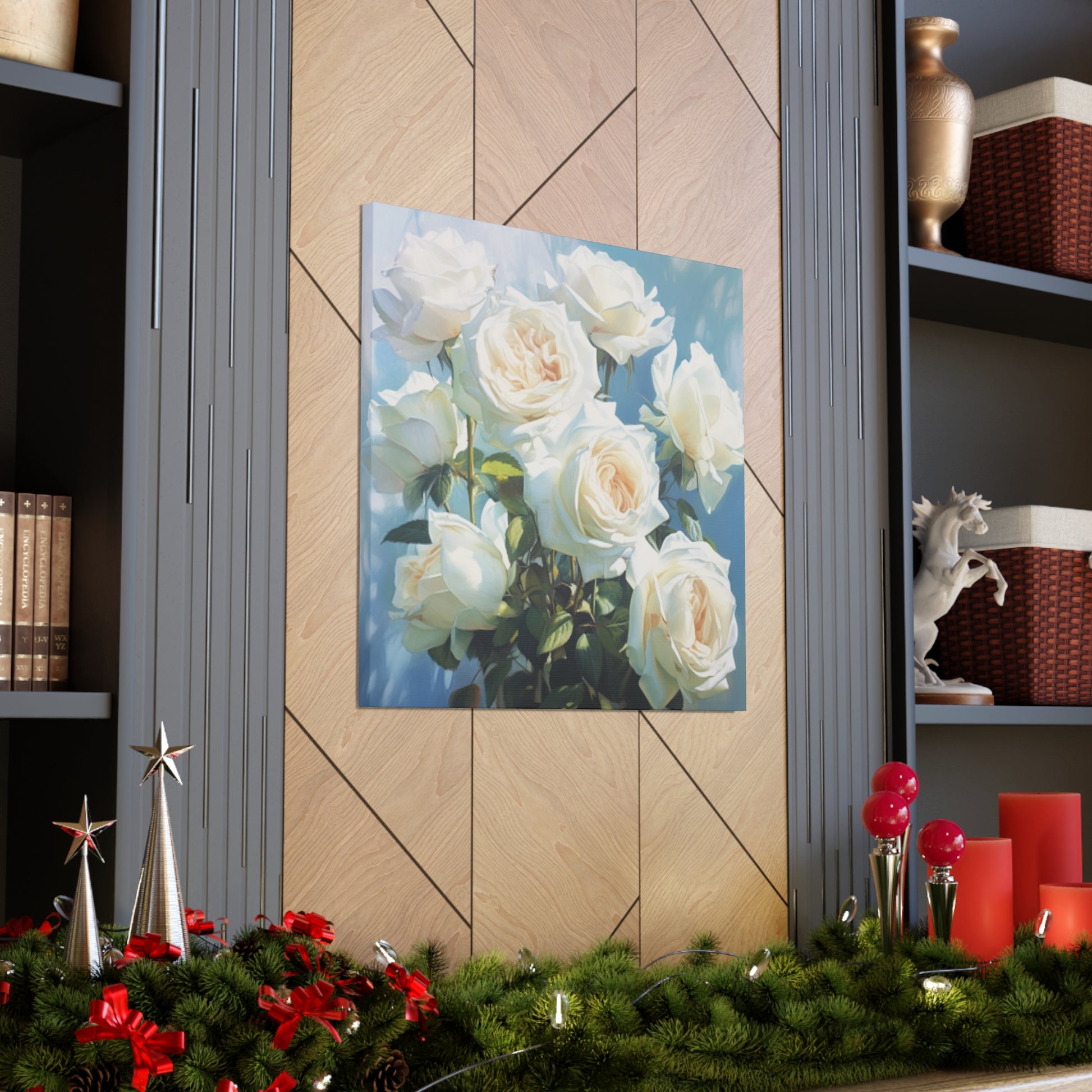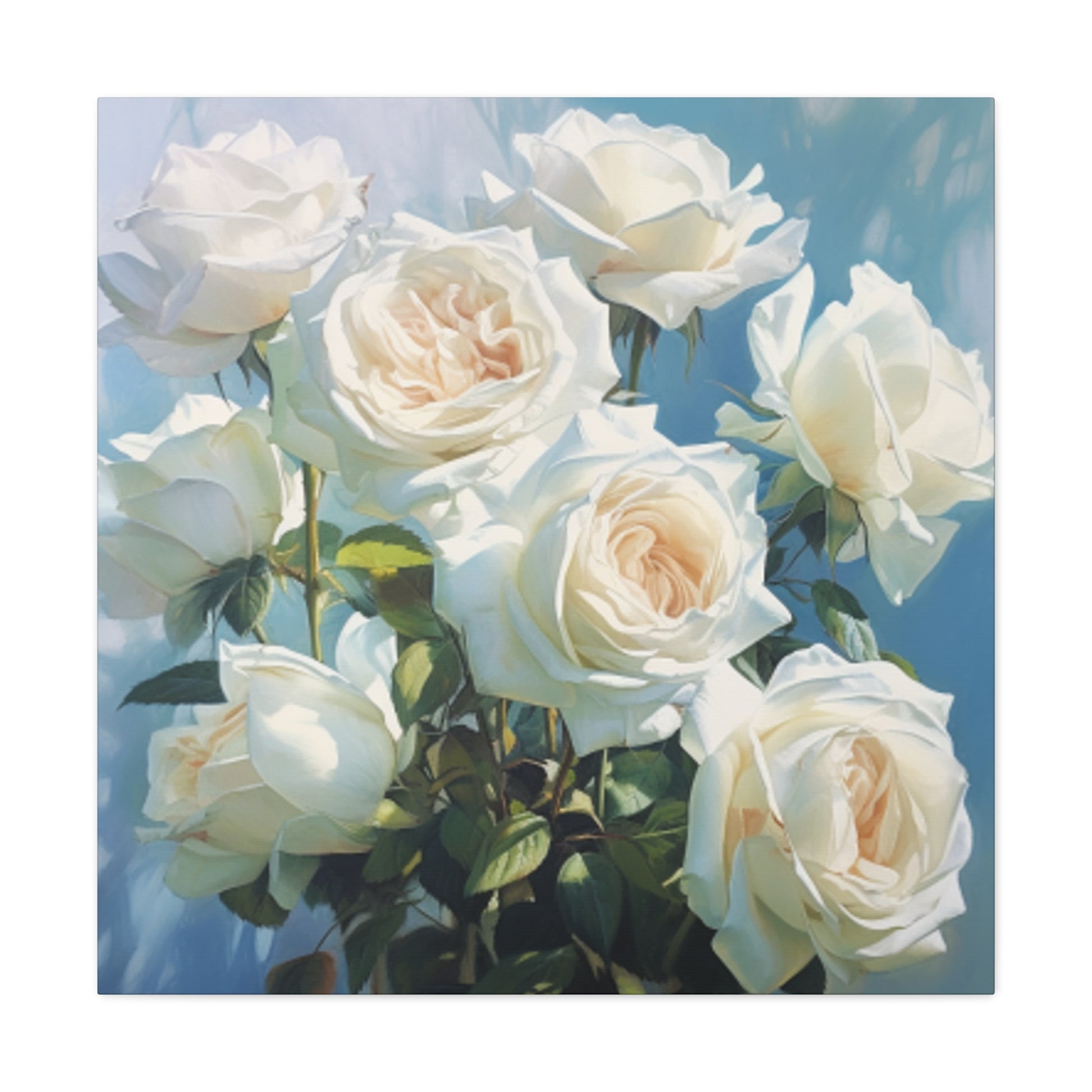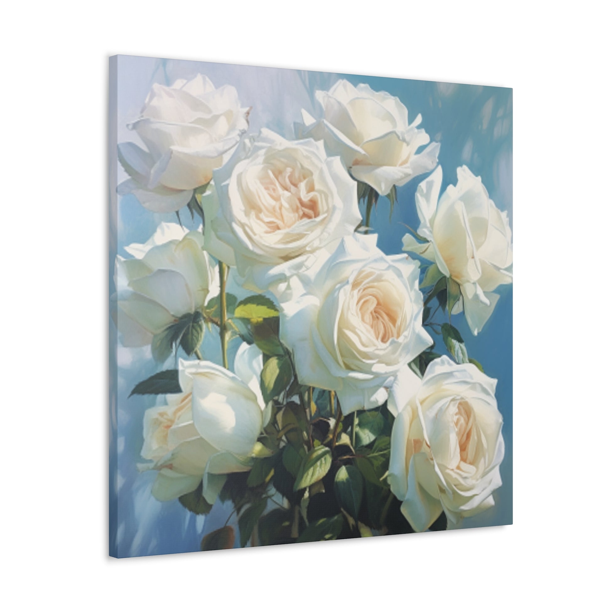 Discover the beauty of Pure White Roses In Bloom large wall art for your living room or bedroom from BestCanvasArt. com.