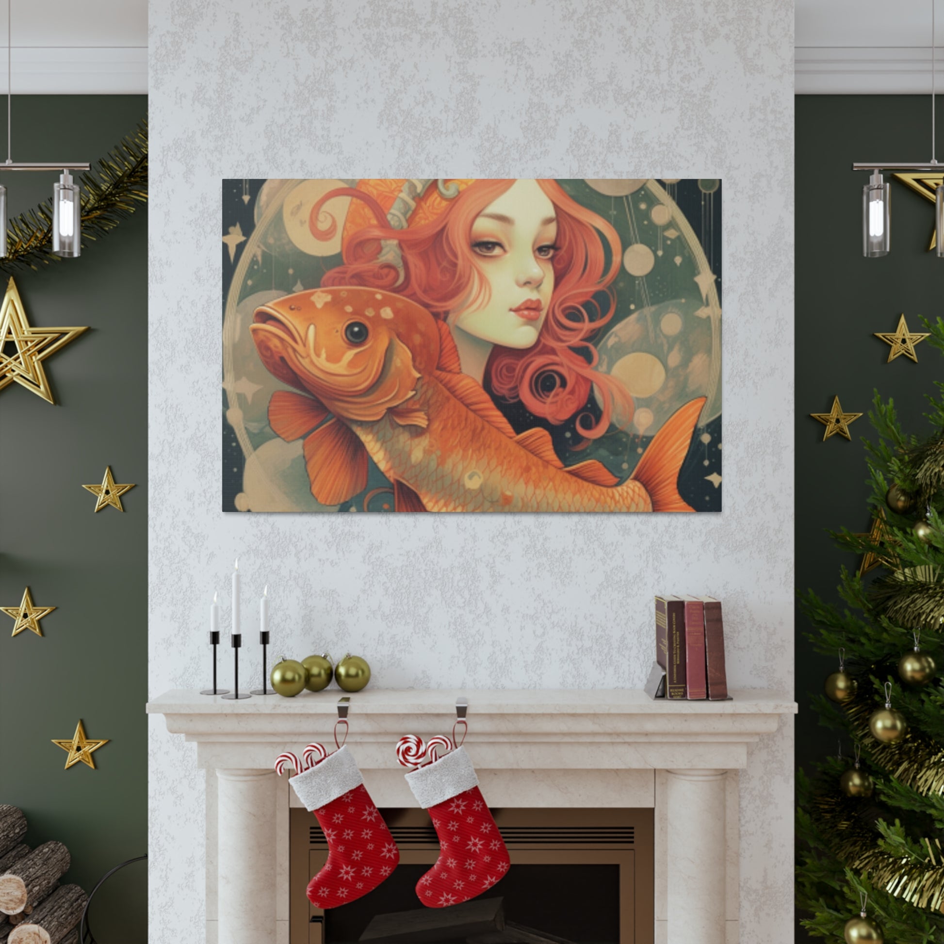 Sassy And Peaceful, Pisces Girl And Fish - Original canvas wall art from BestCanvasArt.com!