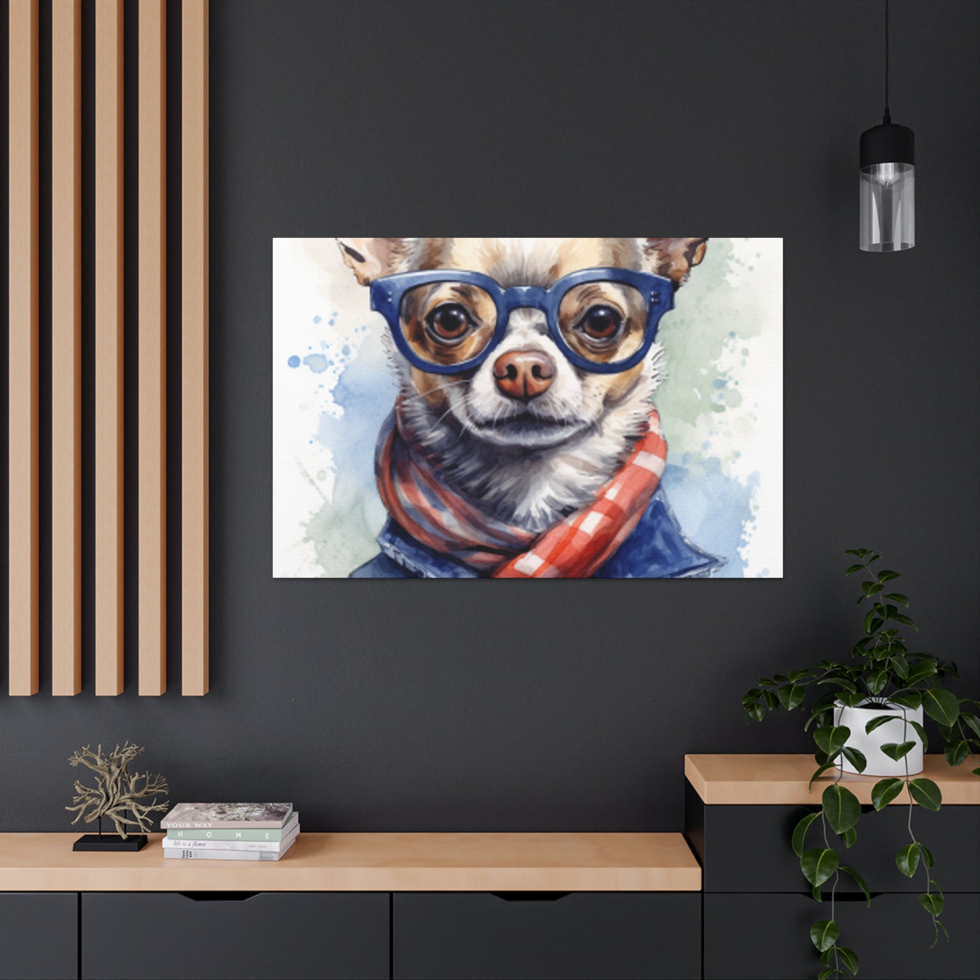 Welcome to BestCanvasArt.com, your online destination for stunning canvas wall art like the Sweet Chihuahua in Blue Glasses and Red, White and Blue. Our high-quality pieces are sure to make a statement in your home. Every piece is made in the USA with a focus on detail and customer satisfaction.