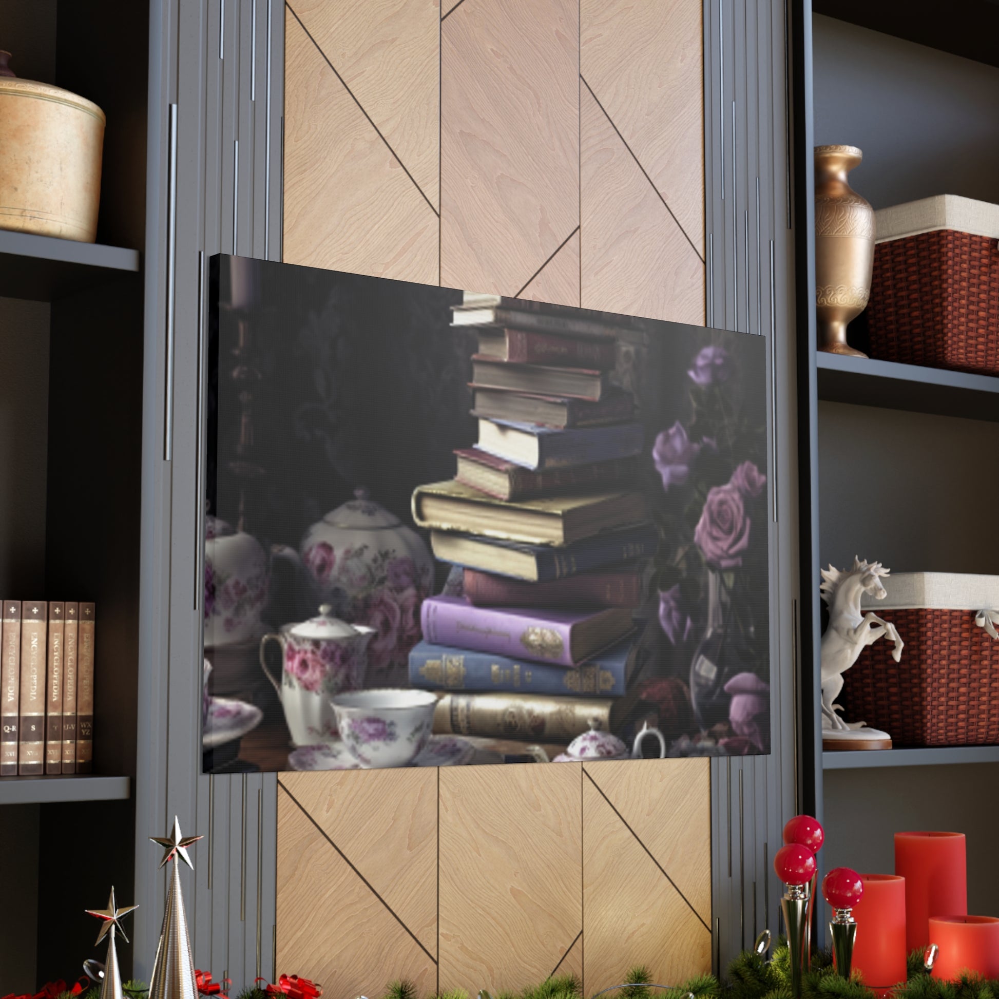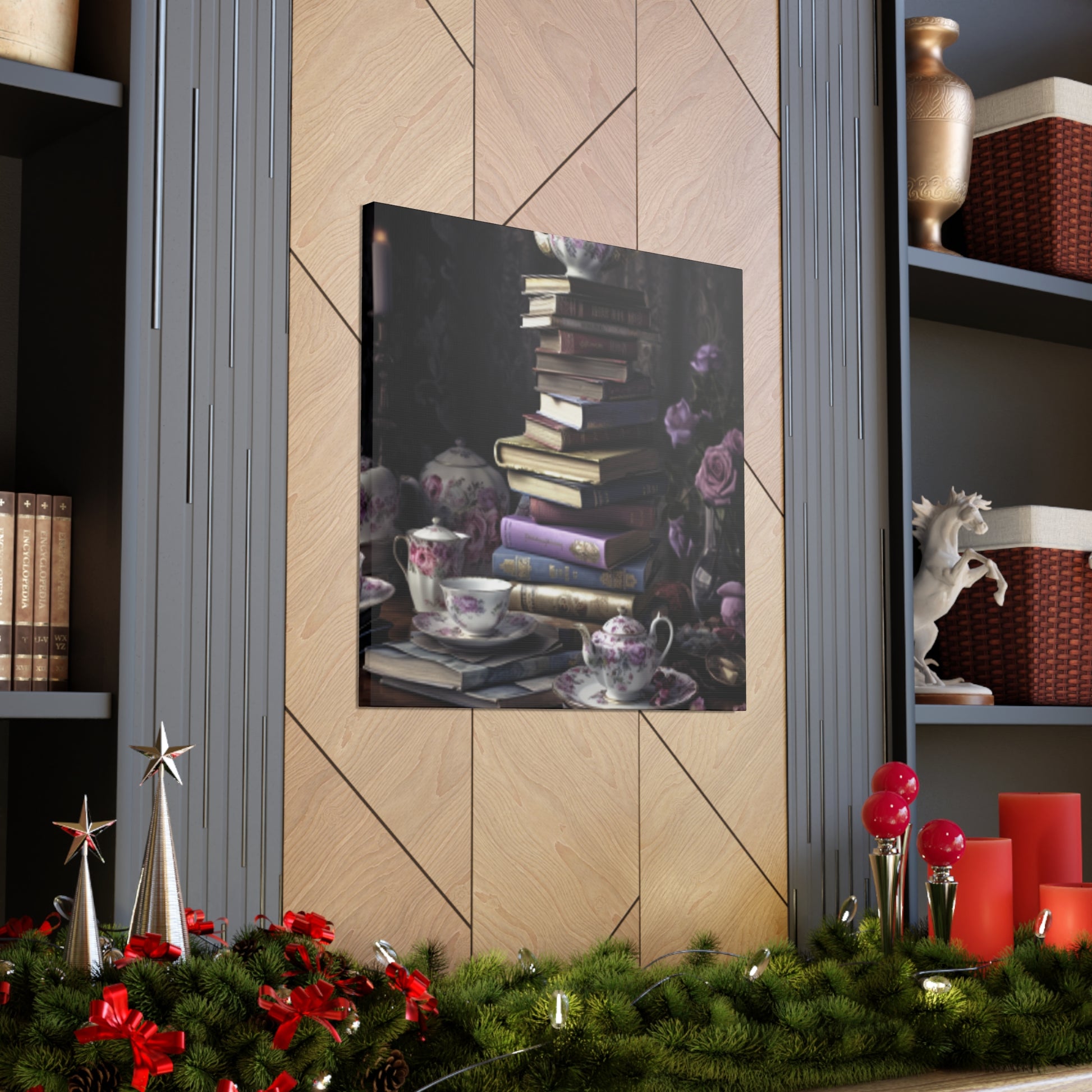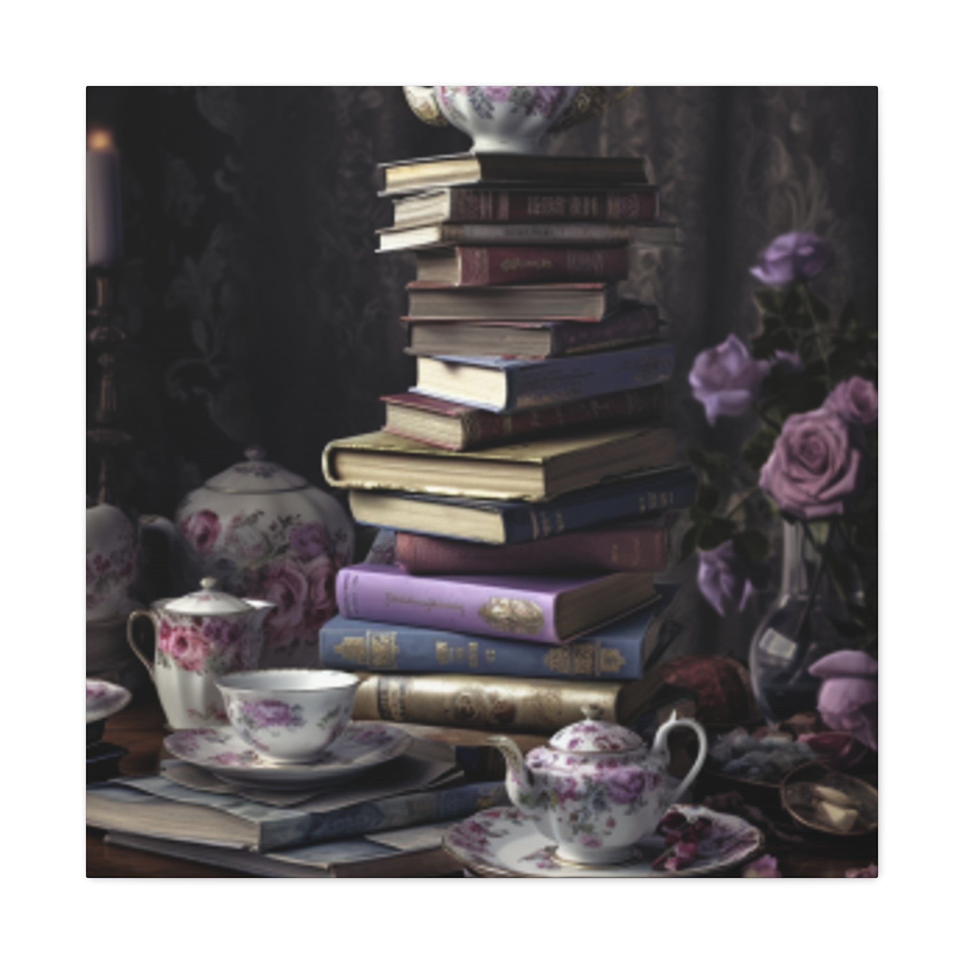 Teatime for a Serious Reader: A visually stunning large wall art piece that needs to be in your home! This unique high quality piece of art is a brilliant depiction of a literary enthusiast having tea. Whether you love to read or know someone who does, this makes for great decor in a study or library.