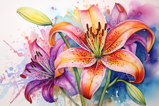 Tropical Watercolor Lilies