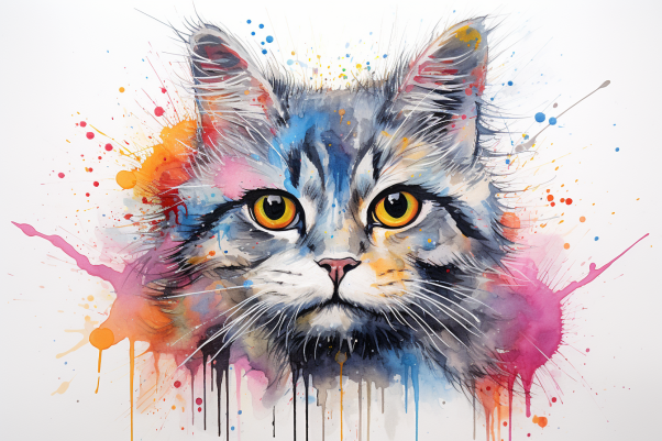 Watercolor Color Splat Cat Diamond Painting Kits