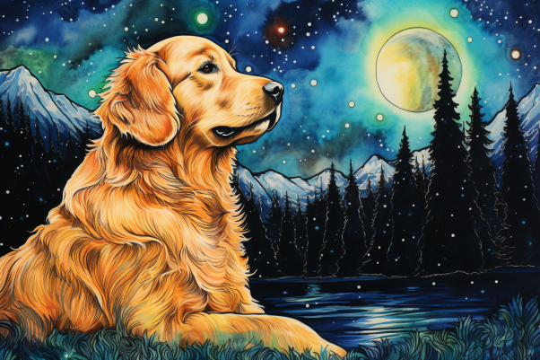 Watercolor Starry Night Golden Retriever