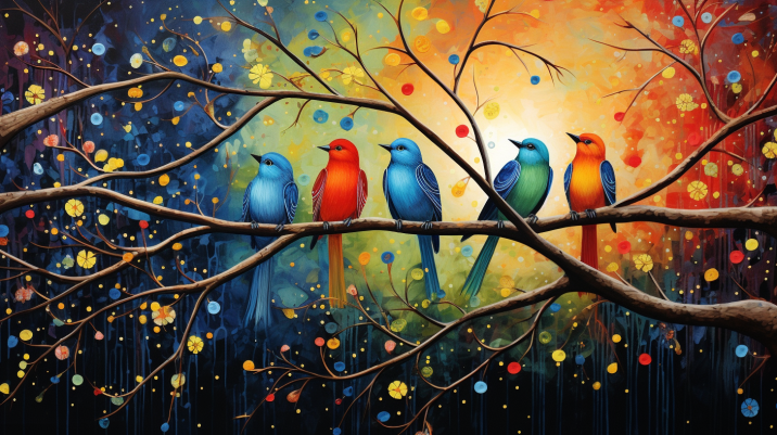 Start your next creative adventure with the Whimsical Colorful Birds On A Branch Diamond Painting Kit! Head over to our Bird Diamond Painting Kits or all Diamond Art Kits collections to check out more amazing diamond painting projects by DiamondPainting.com.
